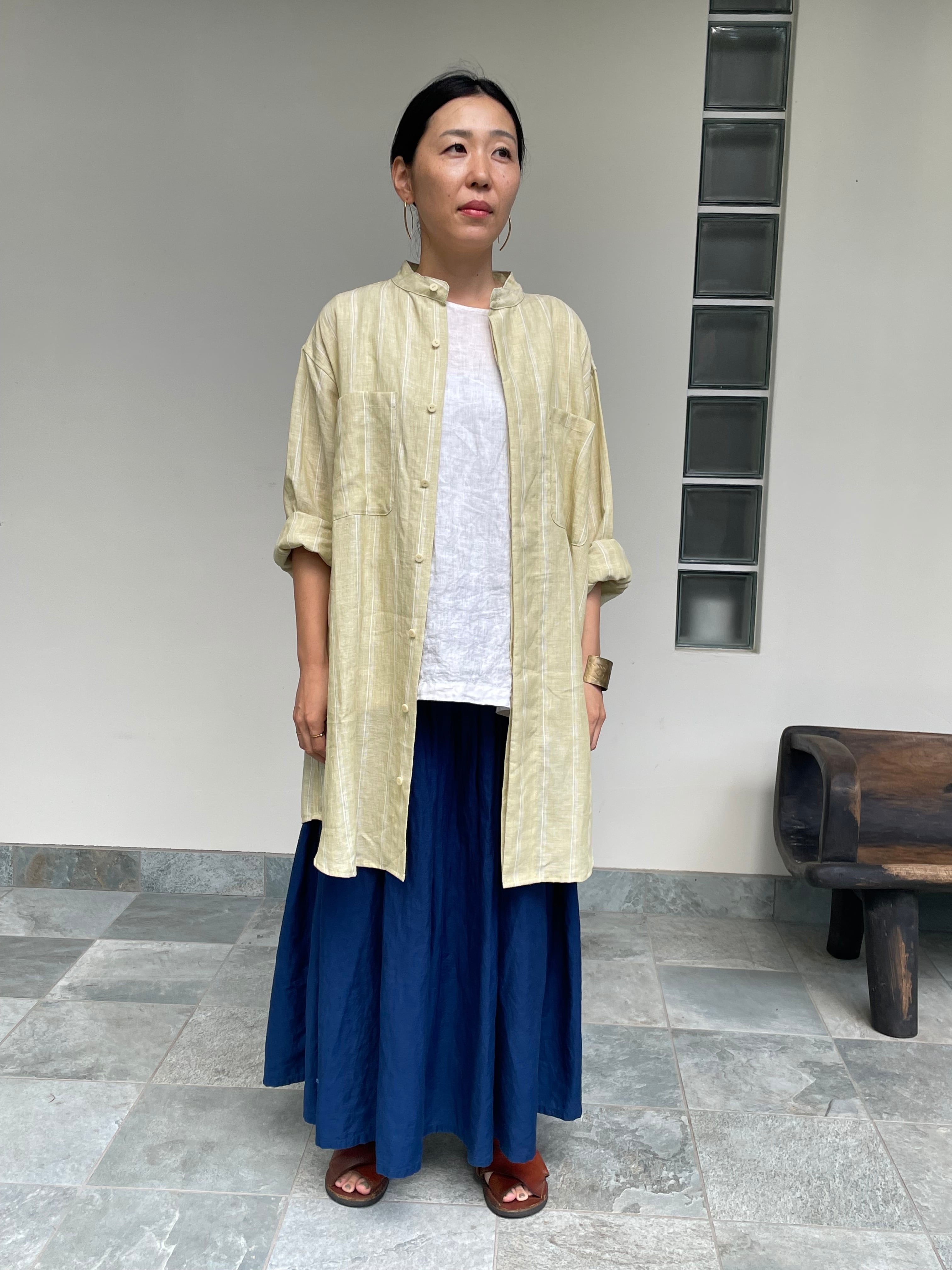大きめのサイズ感がメンズライクな雰囲気で、パンツはもちろんスカートやワンピースの上に袖をまくってラフに羽織って着るのもおすすめです。