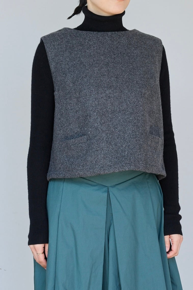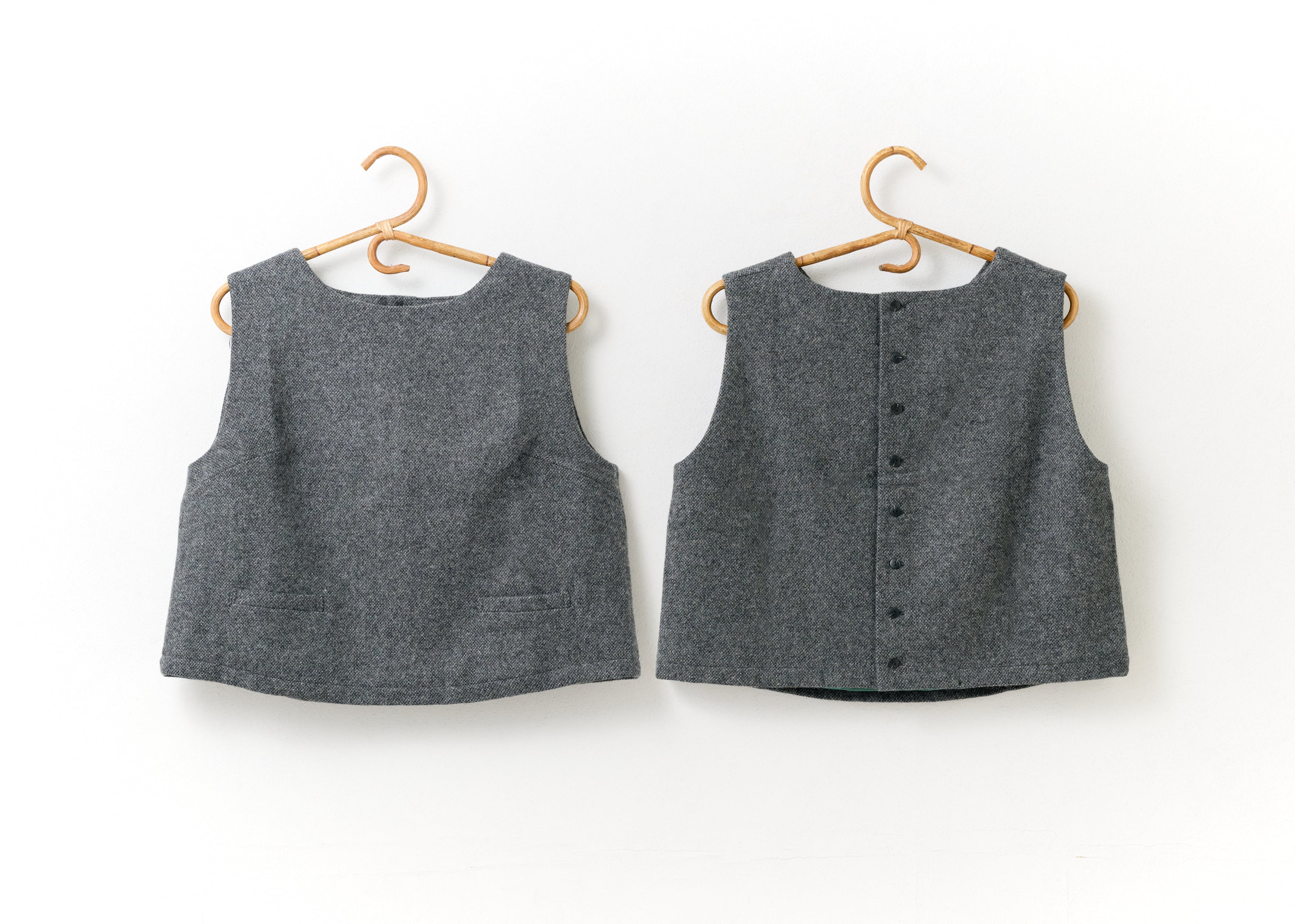 生地をほぐしてアップサイクルした糸で作った日本製の先染め生地で作ったベスト。