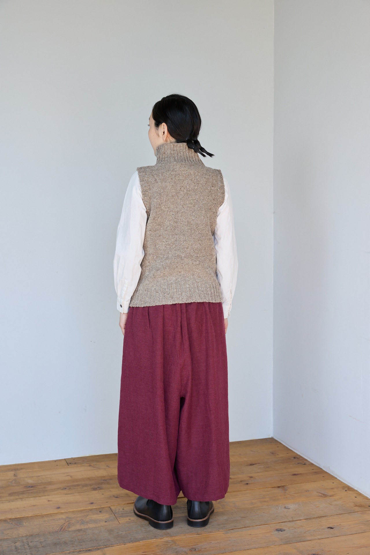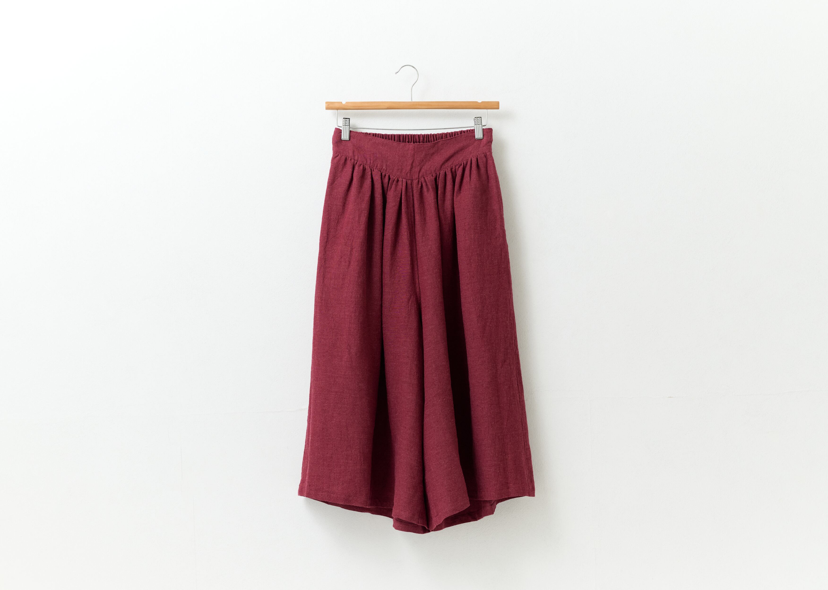 麻とウールの縮み率の違いから生まれる凹凸感と軽い起毛を施した日本製の生地で作ったキュロット。